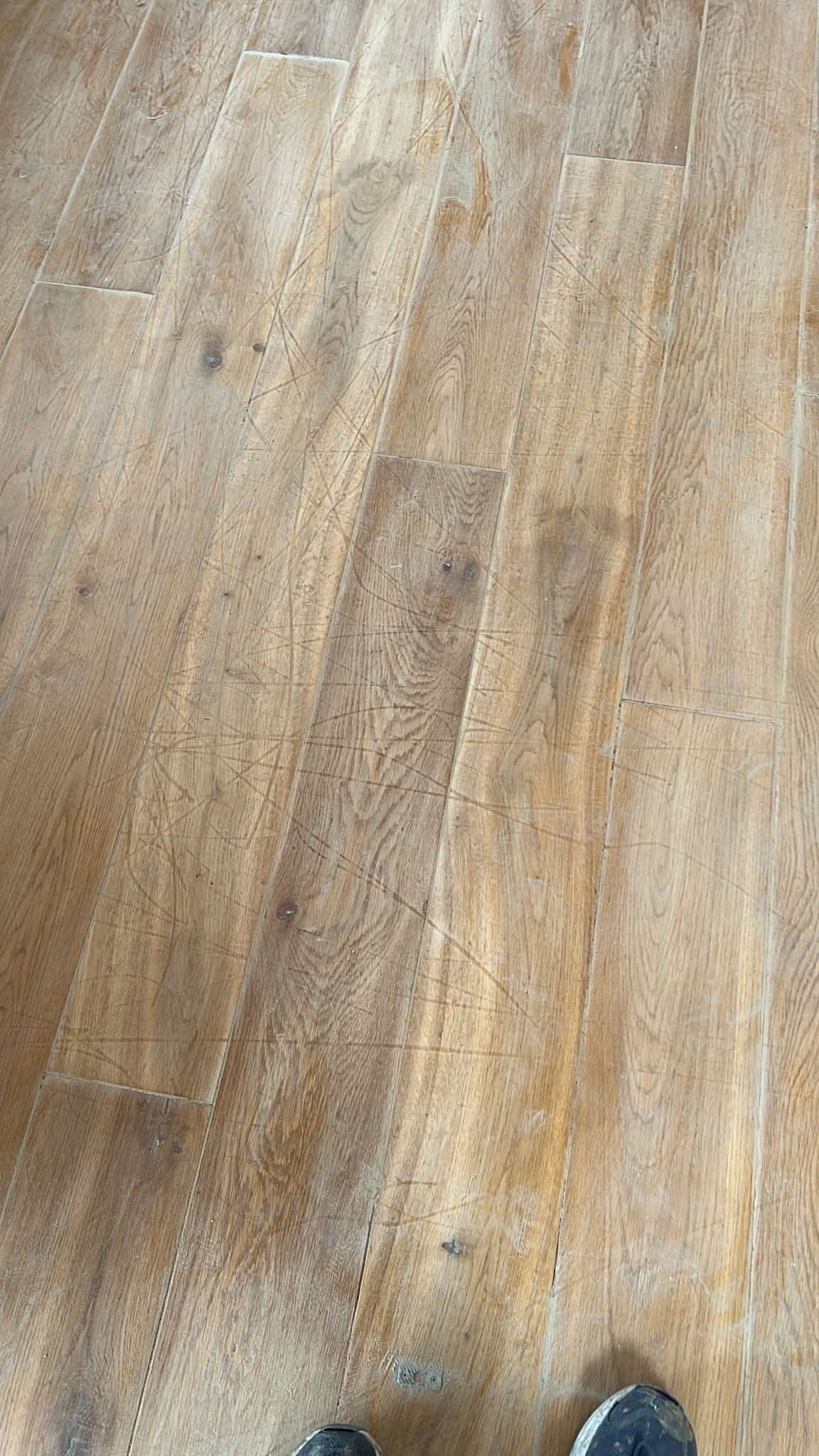 The floor was inspected before work began. Areas of damage, gapping, and surface wear were noted and addressed as part of the scope.